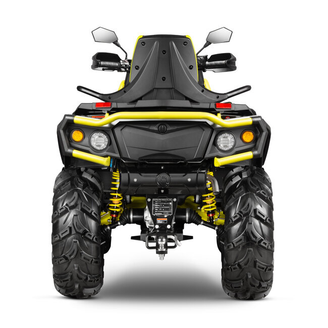 В двухместном квадроцикле PATHCROSS MUD PRO с двигателем 976 см³ и выносным радиатором, новый дизайн передней части, обновленная оптика, LCD приборная панель, электронный ключ зажигания, лебедка нового образца с беспроводным контролером, амортизаторы YUAN с регулировками, новая 10-дюймовая световая балка, новый замок заднего багажного отсека, усиленная задняя багажная площадка, новый рычаг переключения передач.
