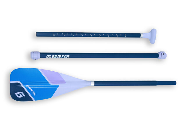 В коробке с SUP доской Gladiator Origin 12’6LT есть все необходимое - вместительная транспортировочная сумка, качественный насос двойного действия, лиш с карабинами, разборное весло из фибергласса с нейлоновой лопастью и ремкомплект.